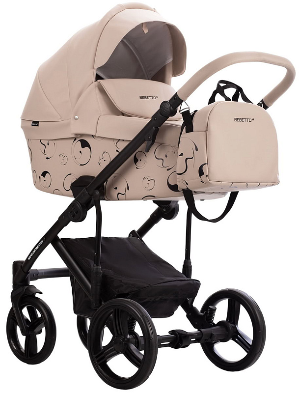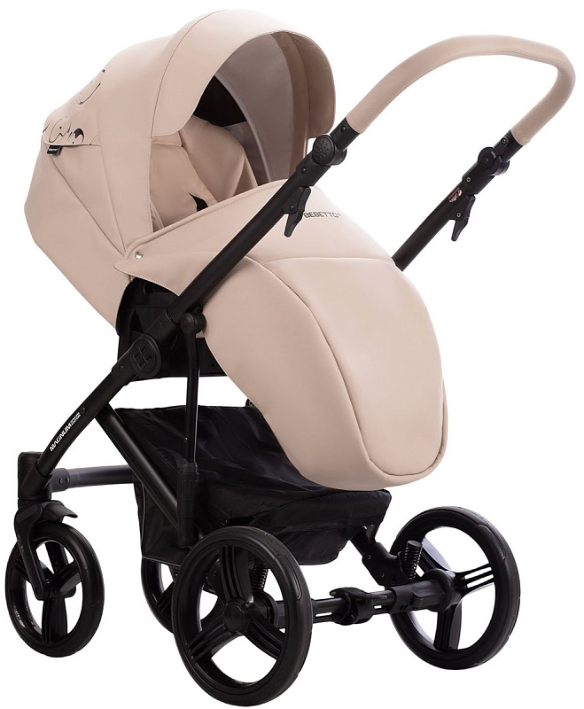 Детская коляска Bebetto Magnum Light SE Pro 2 в 1 01 св.бежевая кожа черная рама