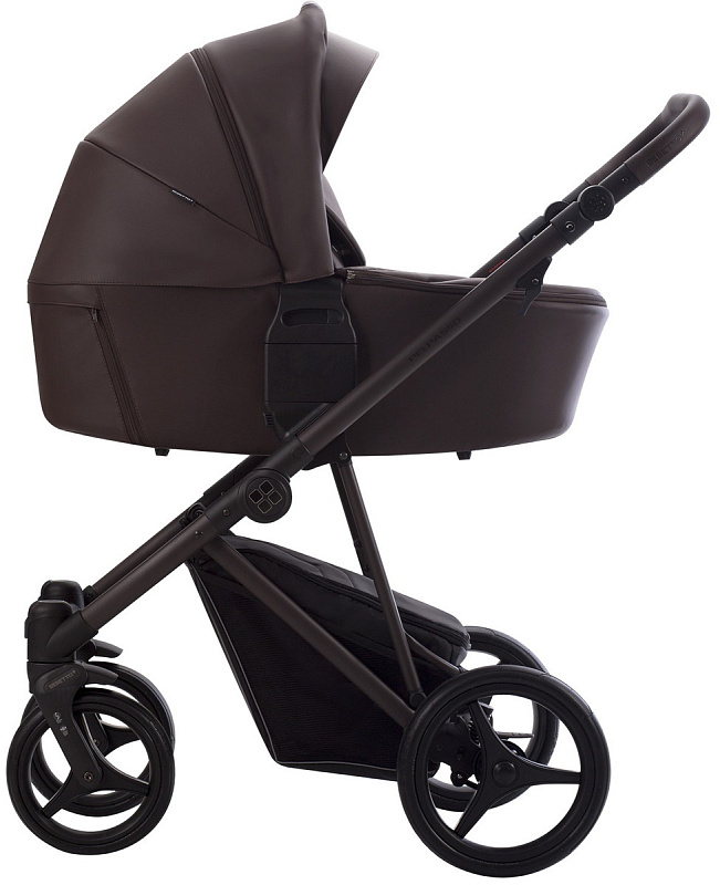 Рама изготовлена из облегченного алюминия, что делает коляску прочной и удобной в управлении. Амортизационная система SAS (Shock Absorbment System) и технология DMS (Wheel Position Memory System) обеспечивают плавный ход и комфортную прогулку по любой поверхности.