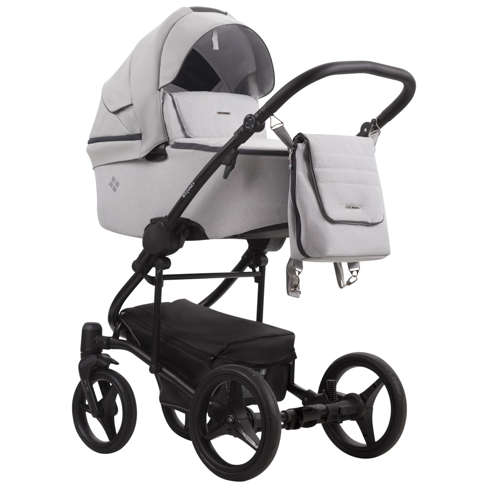 Детская коляска Bebetto Torino 3 в 1 с автокреслом Avionaut Cosmo 05 св.серый+св.серая кожа черная рама