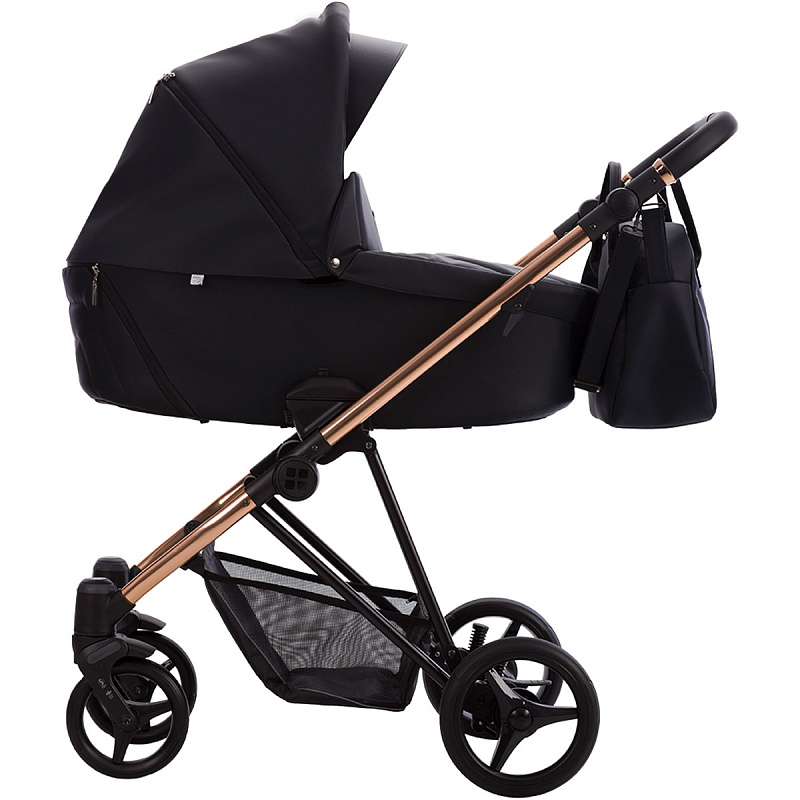 Детская коляска Bebetto Yoddi Premium Class 2 в 1 02 черная кожа рама бронза