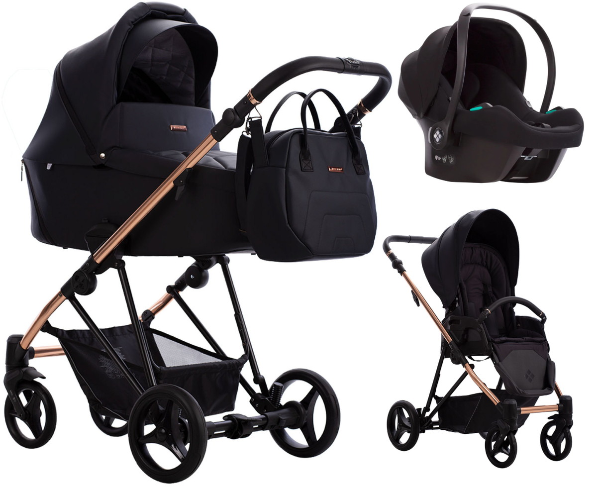 Детская коляска Bebetto Yoddi Premium Class 3 в 1 с автокреслом Avionaut Cosmo 02 черная кожа рама бронза