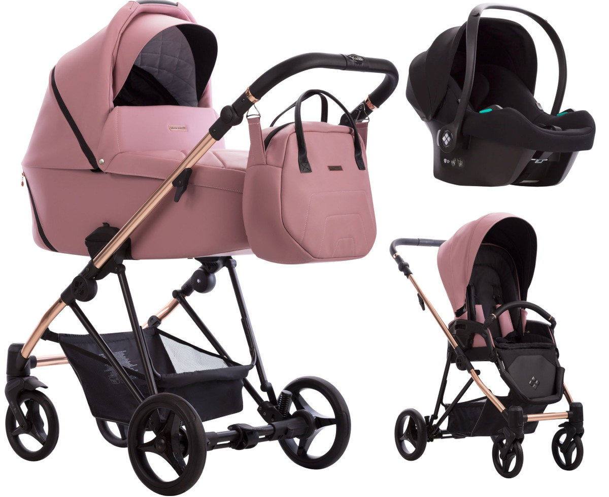 Детская коляска Bebetto Yoddi Premium Class 3 в 1 с автокреслом Avionaut Cosmo 05 розовая кожа рама бронза