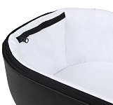 - Низ люльки выполнен из эккокожи, а капюшон - из текстиля с защитой от УФ-излучения и с водоотталкивающей пропиткой