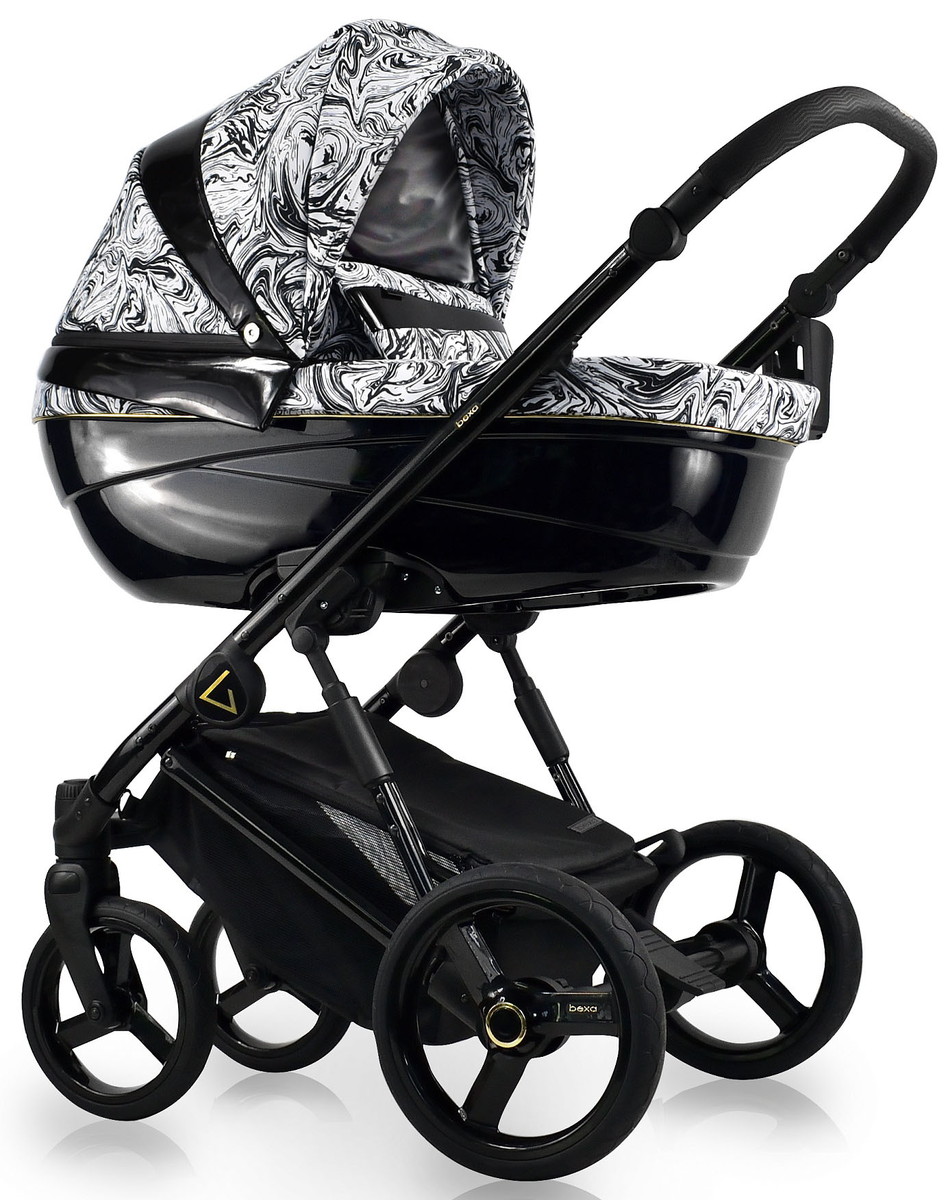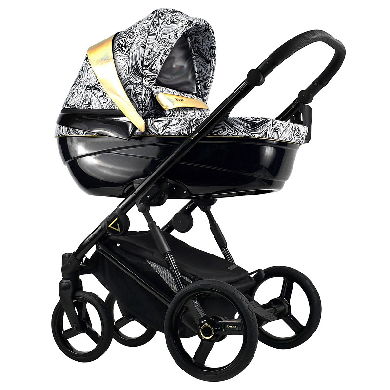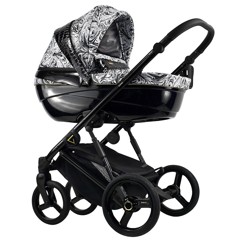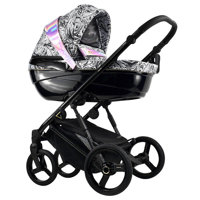 - Люлька коляски изготовлена из глянцевого пластика