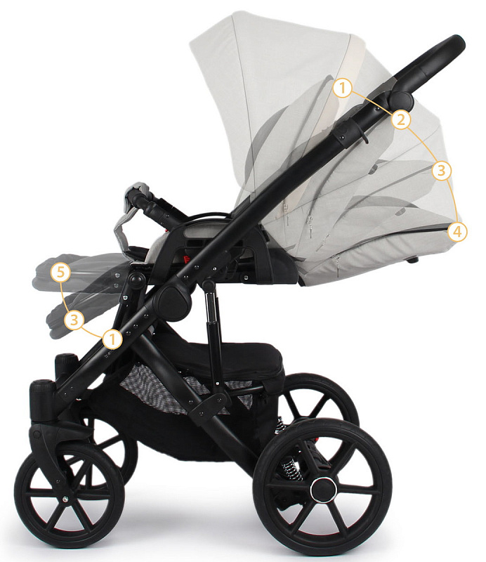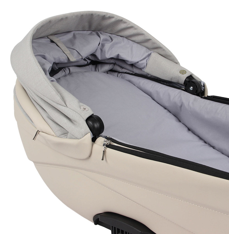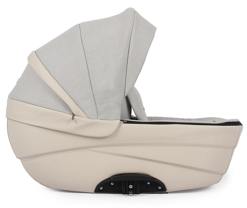 - Пластиковая литая люлька интересной формы снаружи обшита экокожей, капюшон - из водоотталкивающего текстиля с защитой от УФ-излучения