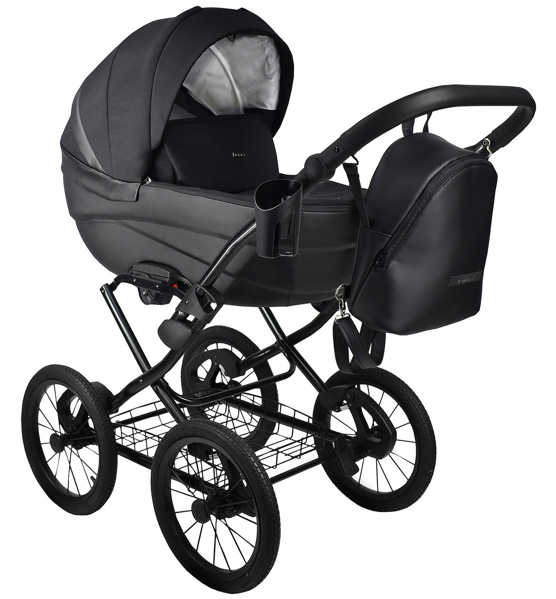 Детская коляска Bexa Ideal Classic 14 2 в 1 ID11G черный+черная кожа