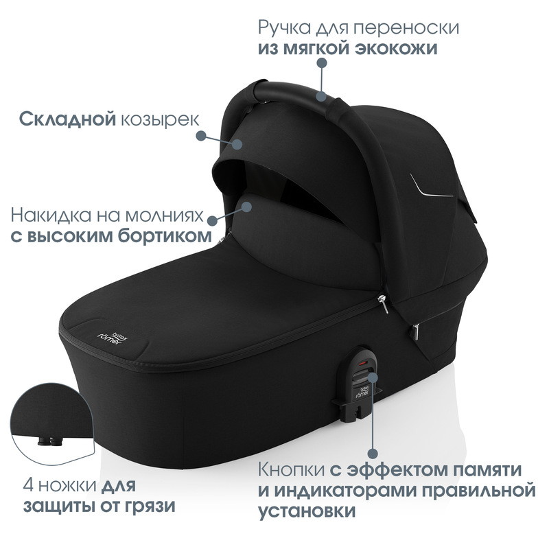 - Люлька надежно крепится к шасси коляски без дополнительных адаптеров и легко снимается одной рукой