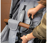 Благодаря возможности быстрой и удобной установки сидения в двух направлениях, вы без труда сможете удовлетворить потребности малыша во время любой поездки. Раскладная спинка и подножка для вертикального, более расслабленного полулежачего или лежачего положения. Ручка имеет не только мягкое покрытие и удобный захват, но также легко регулируется под любой рост. Кроме того, обшивка ручки и защитного бампера под натуральную кожу придают коляске модный и первоклассный вид. Скользящий ремень безопасности можно легко отрегулировать по длине даже когда ребенок сидит в коляске, без необходимости продевать ремень безопасности. Кроме того, мягкие плечевые накладки обеспечивают дополнительный комфорт. Большой козырёк с вентиляционным окном для защиты малыша от ультрафиолетового излучения UPF 50+ и циркуляции воздуха в жаркую погоду.