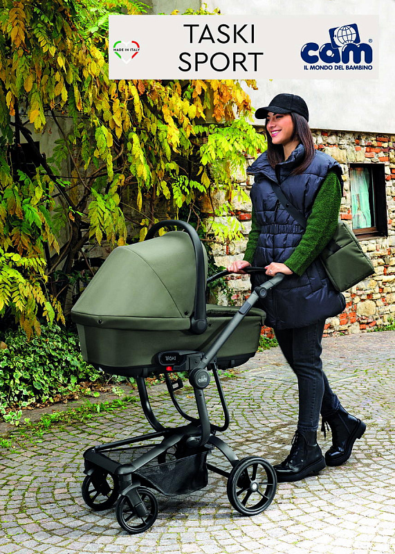 Коляска 3 в 1 Cam Taski Sport - эксклюзивная новинка от итальянской компании, полный модульный набор 3 в 1 на алюминиевом шасси необычной изысканной формы, включает в себя также люльку для новорожденного, прогулочный блок и автокресло группы 0+. При его создании учтены все потребности ребёнка, начиная с самого рождения и до возраста 3-4 лет, так, что покупка этого комплекта заранее решит проблему подбора транспортных средств для малыша на несколько лет вперёд.