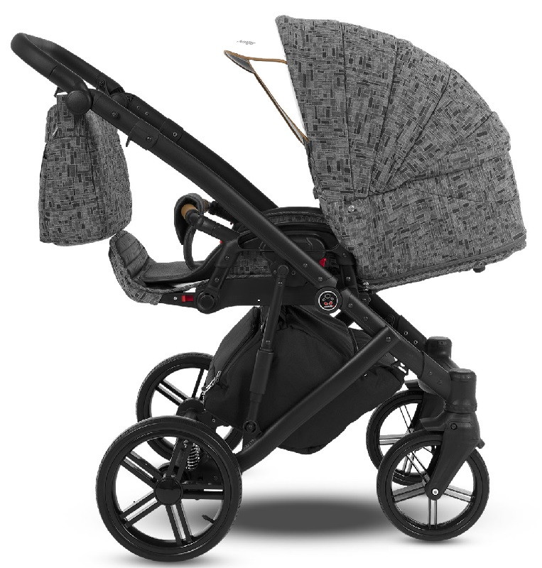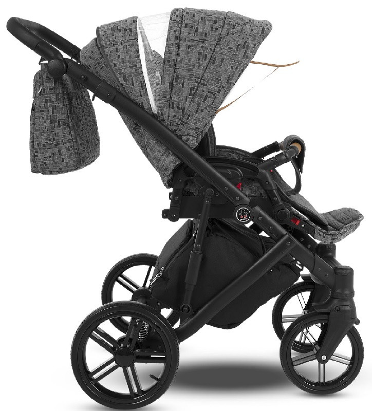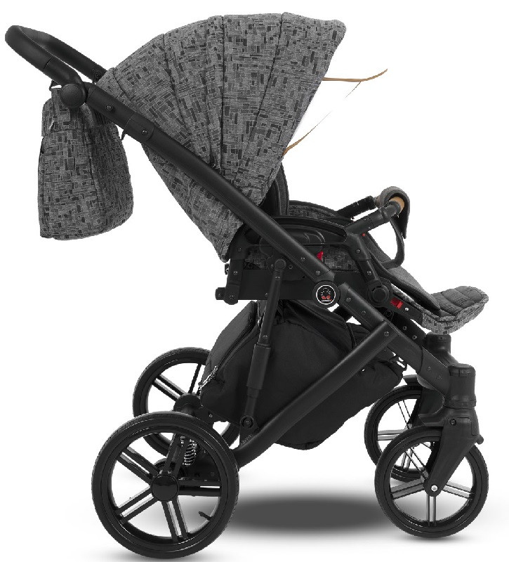 Коляска отличается малым весом, маневренна и идеально подходит для езды, как в городских условиях, так и по более сложной местности. В конструкции обновлённого профиля были использованы новая удобная система сложения, двойная амортизация и не требующие технического обслуживания «гелиевые» колёса. Конструкция рамы изготовлена из облегчённого алюминиевого профиля с дополнительными амортизаторами. Надёжная тормозная система EASY STOP приводится в действие одним лёгким нажатием педали. Инновационная система сложения рамы вместе с колёсами, которые при желании можно снять. Коляска укомплектована стильной вместительной сумкой для мамы и объёмной корзиной (до 2.5 кг) для покупок, съёмным держателем для бутылочек, москитной сеткой и дождевиком.