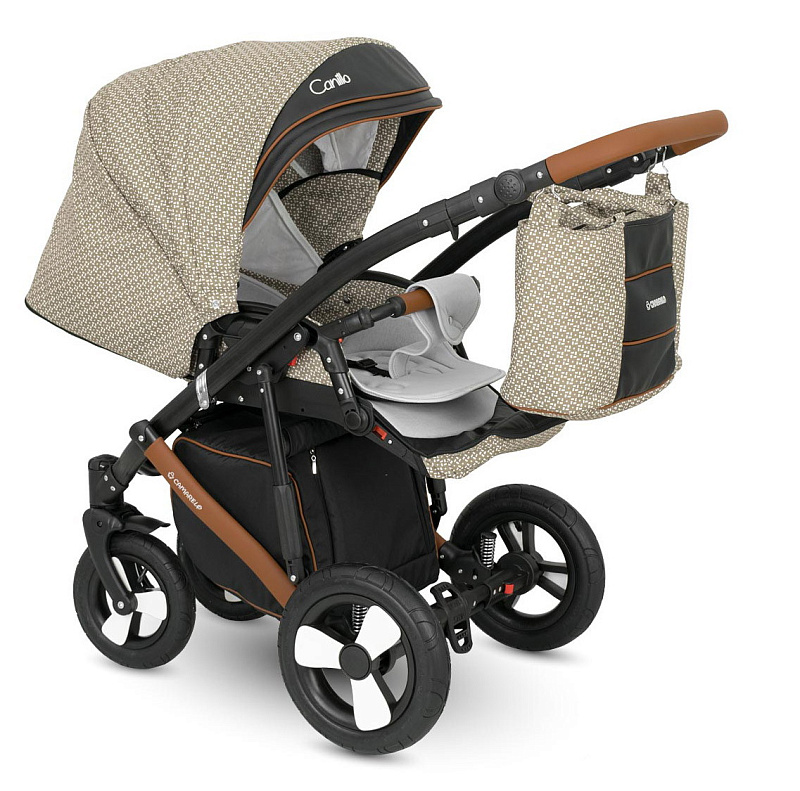 Коляска модульная Camarello Canillo 3 в 1, комплектация которой включает не только люльку и прогулочный блок, но и автокресло, отличается стильным современным дизайном в сочетании с высокой функциональностью модели.