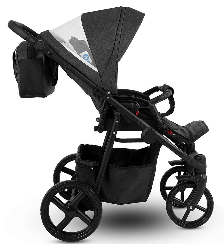 Основной особенностью модели является рациональное дизайнерское решение для мегаполиса в среднем ценовом сегменте, при неизменном качестве. Коляска укомплектована стильной вместительной сумкой для мамы и объёмной вещевой корзиной (до 5 кг) для покупок из износостойкой ткани с удобным доступом, съёмным держателем для бутылочек, москитной сеткой и плотным дождевиком.