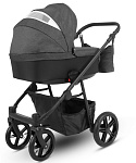 Детская коляска изготовлена из качественных и безопасных материалов. Люлька состоит из литого пластика, внутренний чехол произведен из натурального хлопка. Шасси оснащены центральным задним тормозом, надувными колёсами с подшипниками. Прогулочный блок имеет регулируемые подножку, спинку и капюшон.