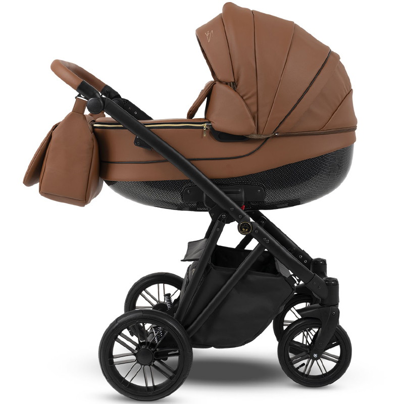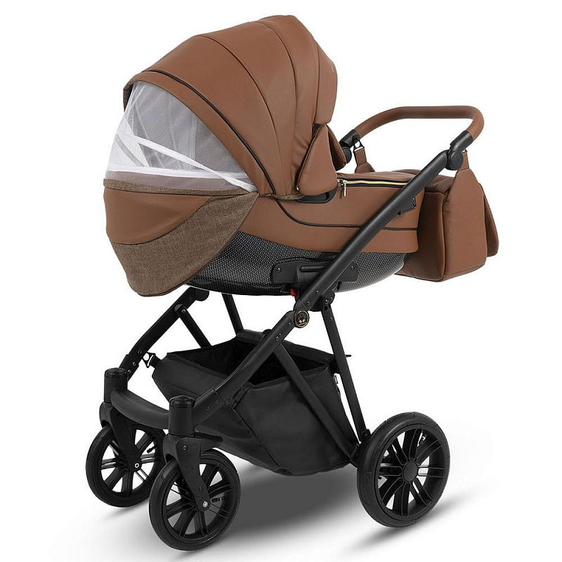 Коляска Camarelo Zeo поставляется в комплекте со стильной вместительной сумкой для мамы, объемной и закрытой корзиной для покупок, съемным держателем для бутылочек, москитной сеткой и дождевиком. Вы сможете легко хранить все необходимые вещи во время прогулок и быть уверенными в их сохранности.