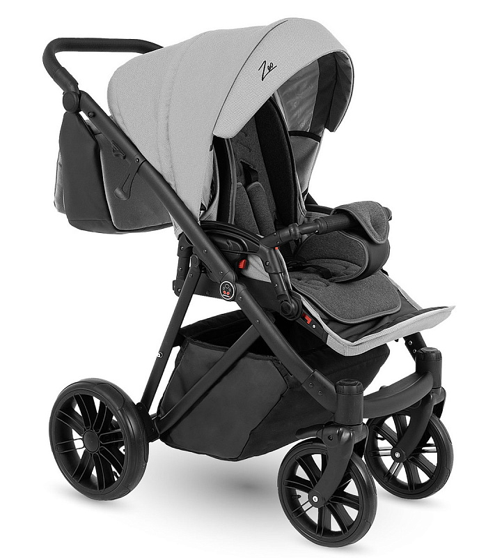 Детская коляска 2 в 1 Camarelo Zeo ZEO'23-12, светло-серый жаккард-чёрная экокожа