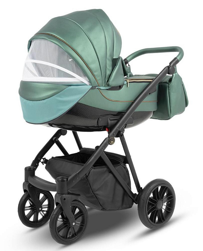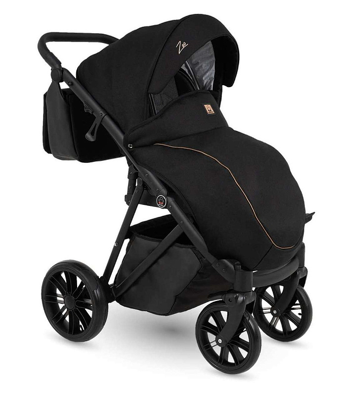Детская коляска 3 в 1 Camarelo Zeo WZEO'23-18, чёрный жаккард-чёрная экокожа, бронзовый кант
