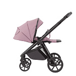 Рама коляски выполнена из алюминия, что делает ее легкой и устойчивой к воздействиям окружающей среды. Шлифованная обработка рамы придает ей эстетичный внешний вид. Амортизация на задней оси шасси имеет двухступенчатую регулировку, что обеспечивает удобство при передвижении по неровной местности. Антишоковая амортизация передних колес поглощает вибрации, смягчая удары при попадании колеса в ямку или препятствие. Адаптеры позволяют установить люльку на более высоком уровне. LED-фонарь с тремя режимами света (сильный, средний и проблесковый) обеспечивает безопасность в темное время суток. Коляска также может заряжаться через USB-порт.