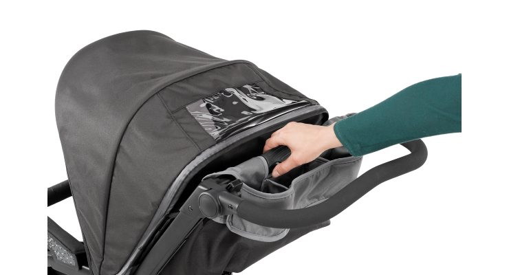 - в капюшоне люльки предусмотрена отстегивающаяся сетка, а капюшон прогулочного блока имеет двойное окно и опускается до уровня бампера;