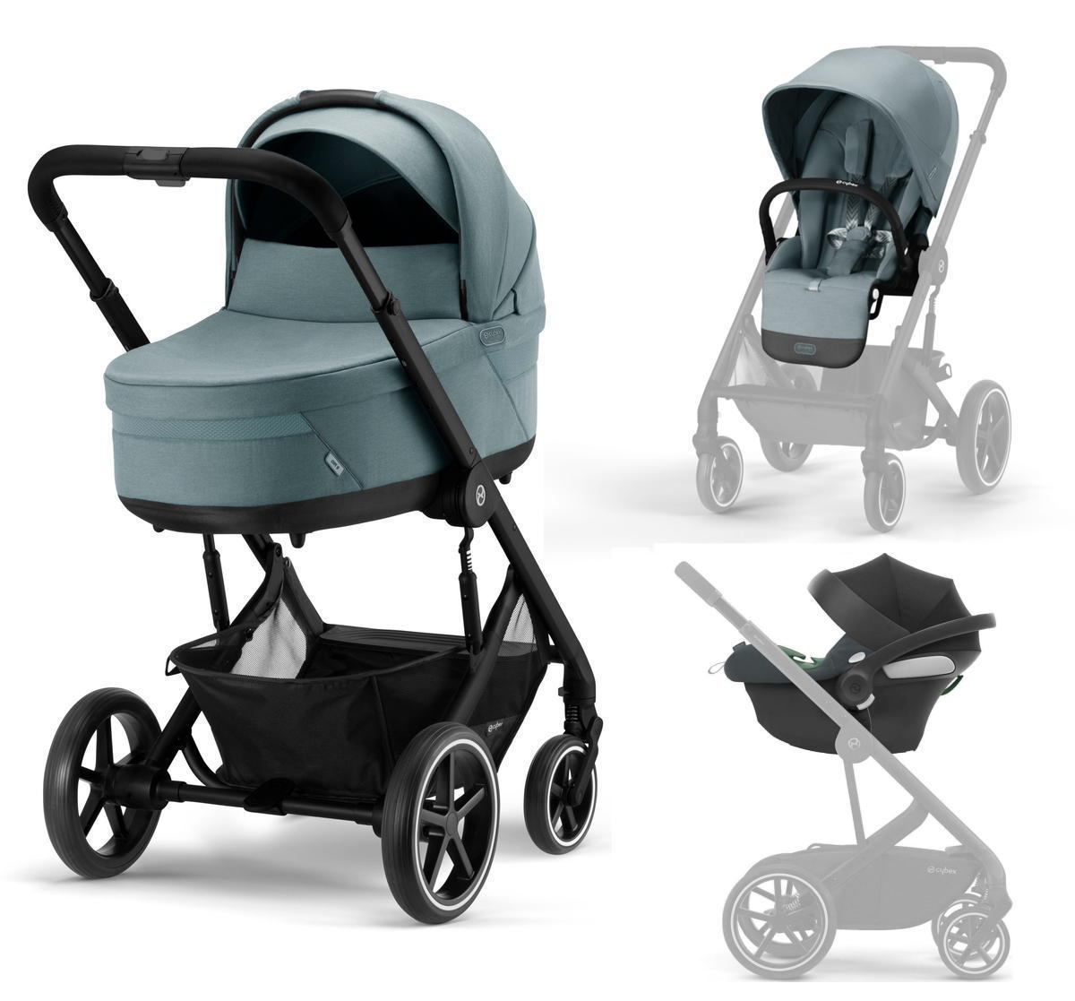Детская коляска Cybex Balios S Lux BLK Aton B2 i-Size 3 в 1 состоит из рамы с колесами, люльки для новорождённых, прогулочного блока и автокресла категории 0+.