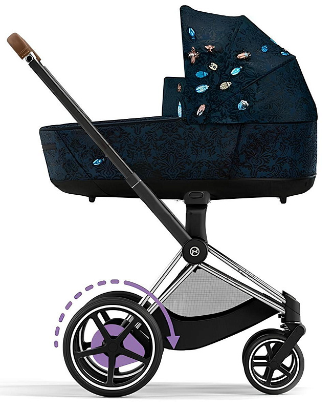 Стильный и легкий силуэт коляски Cybex Priam скрывает в себе множество продуманных деталей. Скрытые пружины амортизации, вставки из карбона и невидимые молнии придают коляске особый шарм. Спальный блок (люльку) можно установить в любом направлении - по ходу движения или лицом к маме.