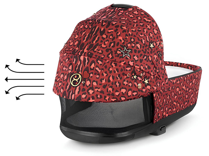 Основным отличием люльки (спального блока) Priam Lux Carry Cot предыдущей модели, является наличие дополнительного кармашка на молнии спереди люльки, а также измененная система установки спального блока на шасси. Люлька устанавливается на адаптеры, которые подходят и для автокресла Cybex. Внутри люльки находится мягкий матрасик, который запоминает положение малыша. Матрас изготовлен из ортопедической пены имеют хороший уровень износостойкости. Его подкладка также изготовлена из 100% хлопка. Всё это гарантирует максимальный комфорт и отличную воздухопроницаемость для вашего ребенка. Люлька (спальный блок) оборудована защитным капюшоном, который может раскладываться и регулироваться в зависимости от требований. При изготовлении люльки использовались безопасные материалы, протестированные в соответствии с самыми высокими стандартами. Для того, чтобы родителям было удобно следить за состоянием ребенка, в капюшоне проделано специальное окошко. Кроме того, это окошко выполняет функцию вентиляции при прогулках в жаркое время года, при желании окошко можно закрыть.