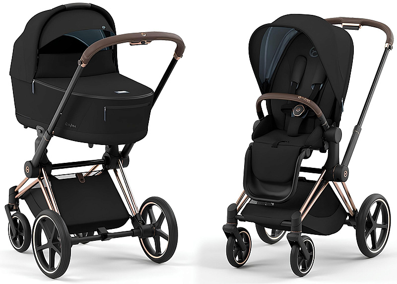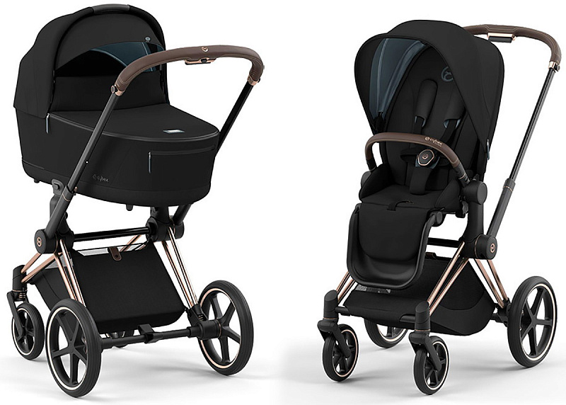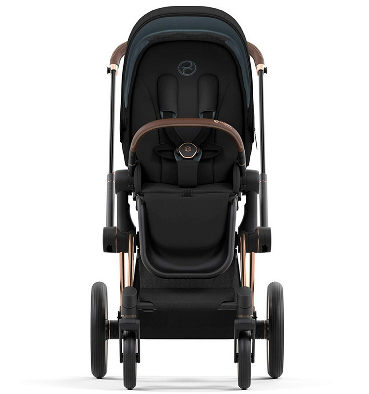 Cybex Priam IV 2 в 1 (Сайбекс Приам 4) является комплектом немецкой гибридной универсальной премиальной коляски, который удовлетворит все изысканные потребности с первых дней жизни вашего малыша до достижения им 4-летнего возраста. Данная модель коляски Priam IV имеет шасси цвета Rosegold (рама розовое золото, бампер и ручка в коричневом оттенке).