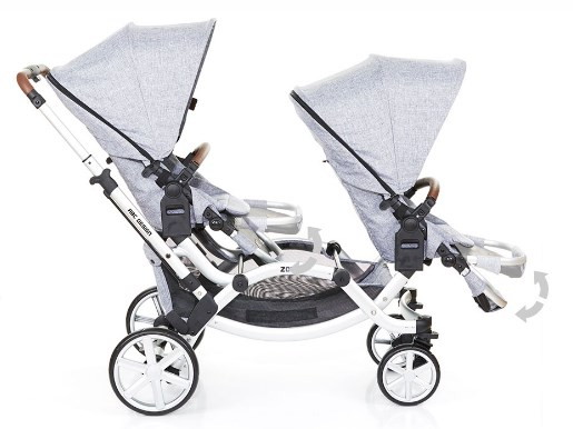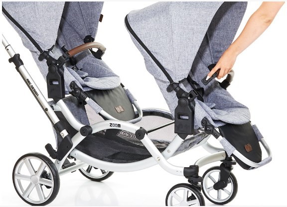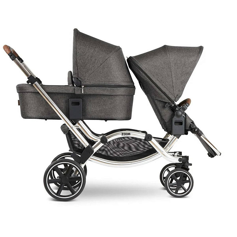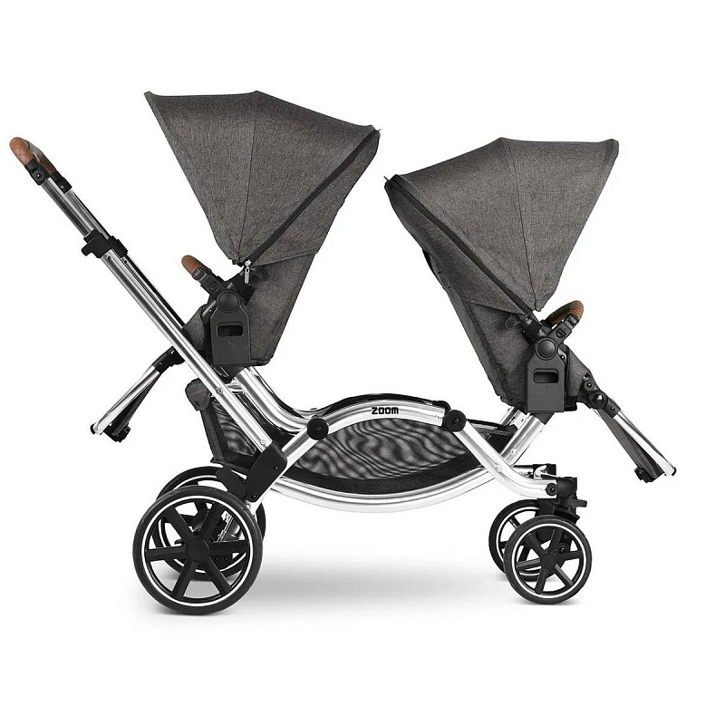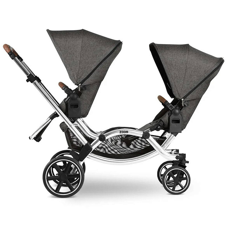 Коляска Zoom Diamond - отличный вариант для прогулок, если у вас двое детишек. Неважно, двойняшки они или погодки, ведь эту коляску можно использовать в различных комбинациях! 2 люльки, два прогулочных сидения или люлька и прогулочное сидение. На шасси при помощи адаптеров можно поставить автокресла группы 0+ Maxi-Cosi или Cybex. Шасси FD-Design Zoom сделано «паровозом»: детки сидят друг за другом.