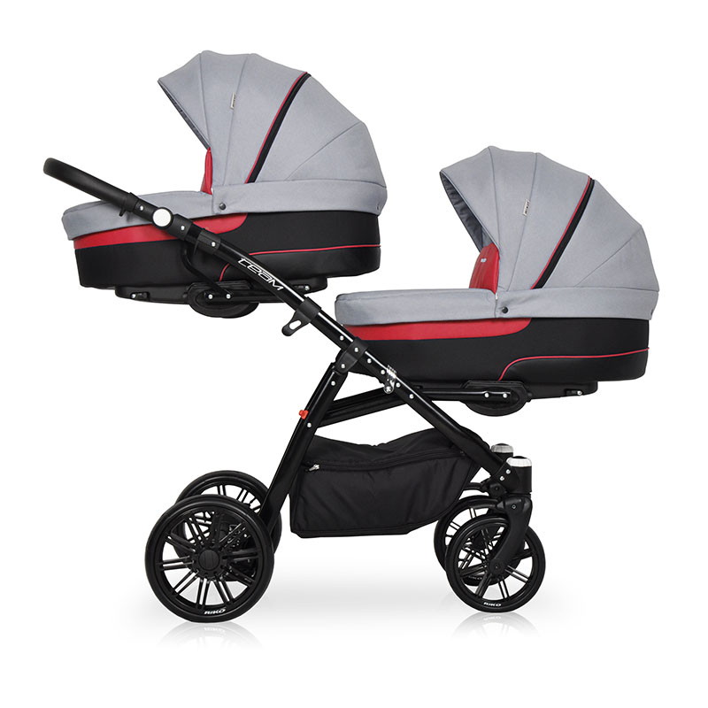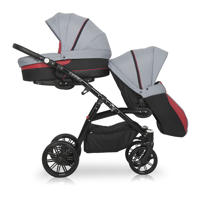 Детская коляска для двойни Riko Team 2 в 1 01 серый-красный