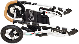 - Удобное и прочное шасси позволяет без труда монтировать прогулочный блок и люльку. Кроме того, вы всегда можете дополнительно приобрести автокресло.