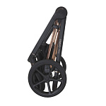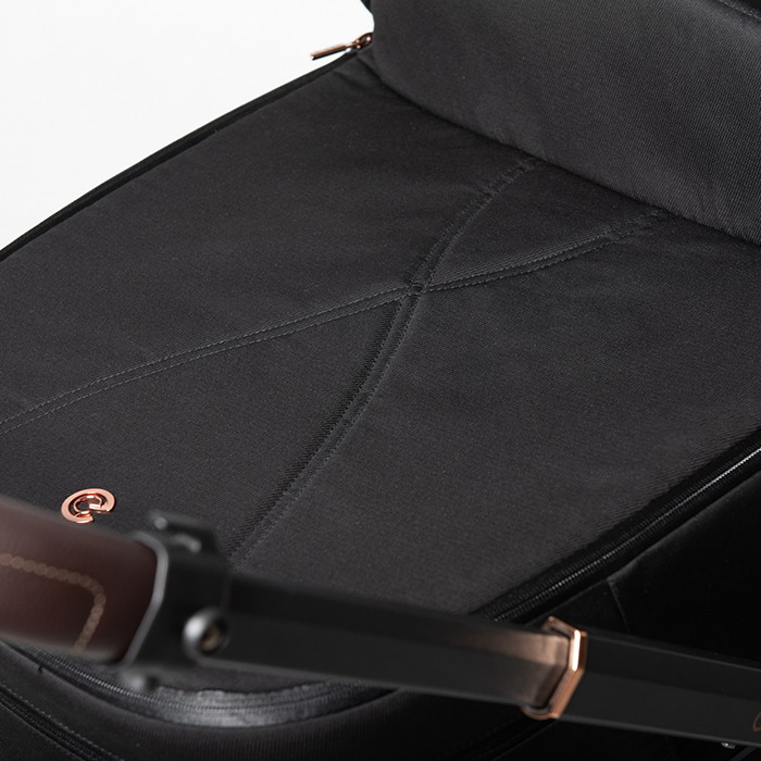 Каждая линия шасси гармонирует с другой, а идеально подобранные цвета подчеркивают особые детали. Мягкая ручка из эко-кожи с особым рисунком имеет очень приятный хват. Держаться за коляску истинное наслаждение. Тем более она с легкостью подстроится под ваш рост – просто нажмите на кнопку по центру и отрегулируйте ее высоту под себя. Внимание здесь уделено каждой детали. Так по бокам ручки находятся маленькие крючки. Благодаря им сюда удобно вешать сумку или пакет. Упругие гелевые колеса с протектором имеют отличное сцепление с дорогой. Они не нуждаются в подкачке, имеют прочные резиновые покрышки и с легкостью проезжают проблемные участки пути. При движении по песку или снегу передние поворотные колеса можно зафиксировать в положении прямо.
