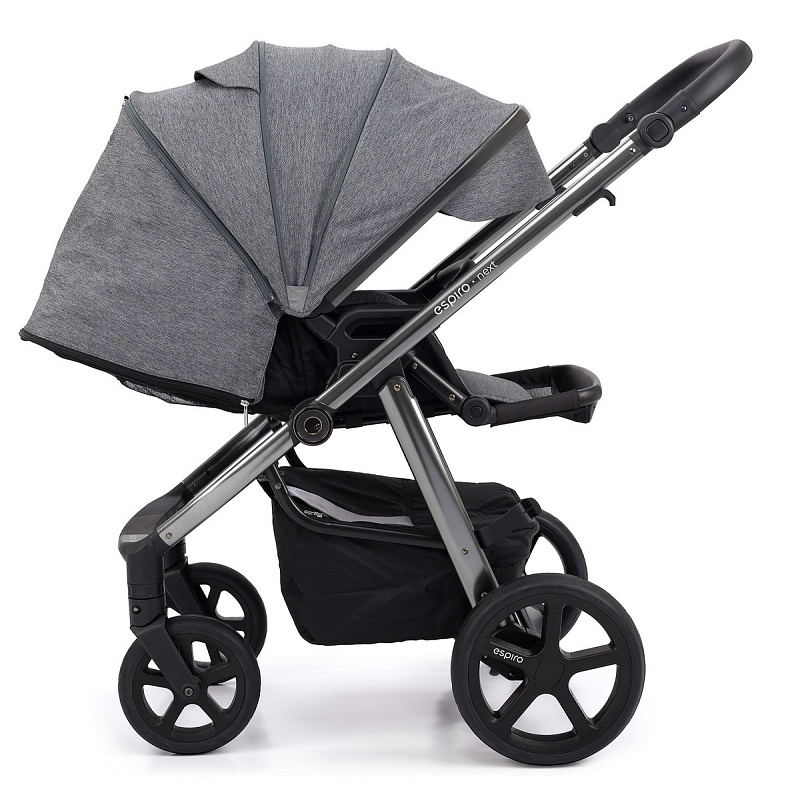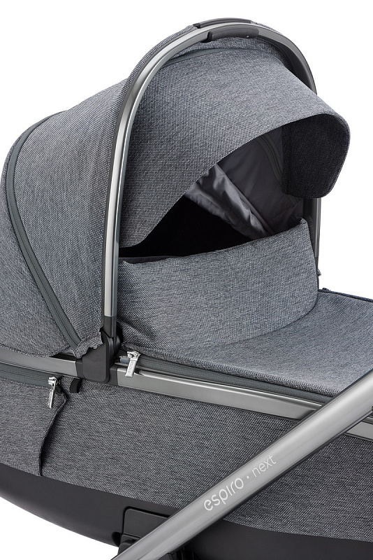 Next Chrome – очередное обновление коляски Espiro Next со стильной хромированной рамой темного цвета и модными тканями благородных оттенков. Обновление коснулось прогулочного блока: сиденье с новым дизайном стало легче и элегантнее. Также в обновленную версию включена панорамная вентиляция, которая полностью открывает ребенка для максимально комфортного сна.