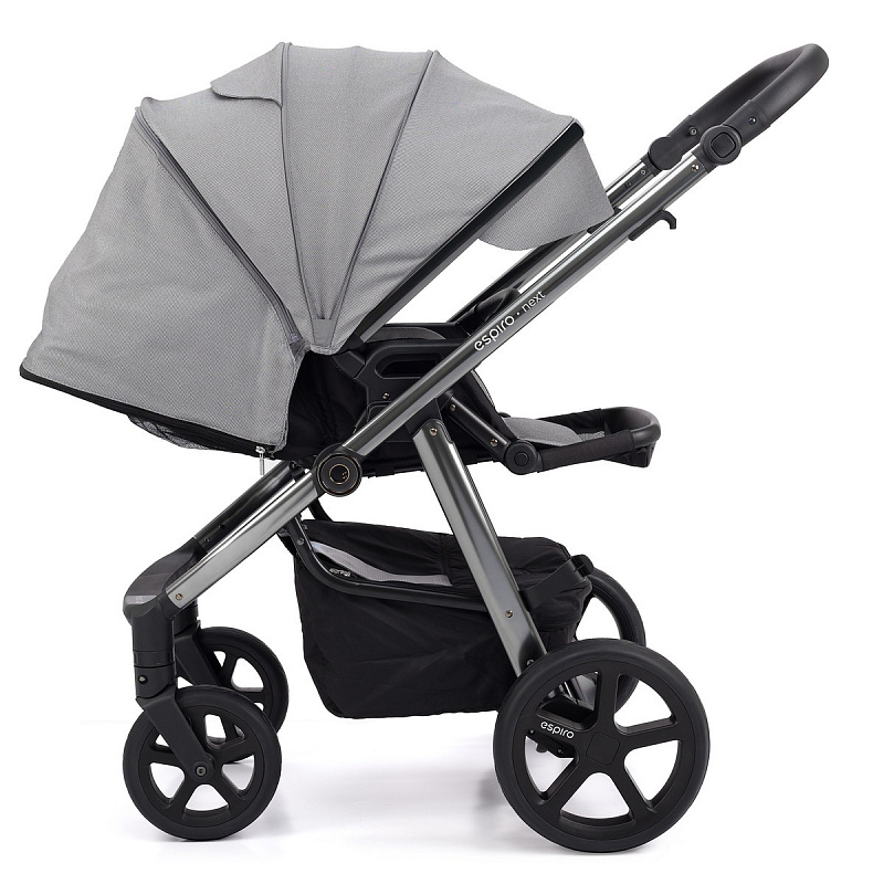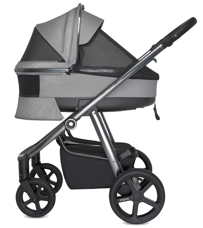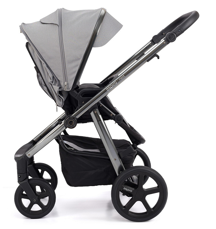 Next Chrome – очередное обновление коляски Espiro Next со стильной хромированной рамой темного цвета и модными тканями благородных оттенков. Обновление коснулось прогулочного блока: сиденье с новым дизайном стало легче и элегантнее. Также в обновленную версию включена панорамная вентиляция, которая полностью открывает ребенка для максимально комфортного сна.