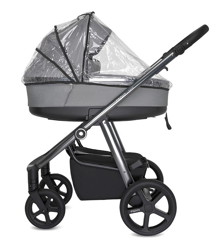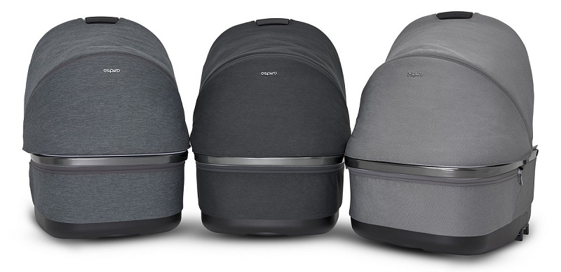 В комплекте идет удобный двухсторонний матрасик из бамбука и хлопка. Внутри отделка также хлопковая, чехлы снимаются для стирки. В спальный блок встроена удобная ручка-переноска. Фирменная черта колясок «Эспиро» - третья опора, которая дольше сохраняет основные опоры в отличном состоянии и также смягчает укачивание при столкновении коляски с бордюрами и при езде по ухабистой дороге. Сам механизм съема и установки люльки стал проще: теперь не надо обхватывать руками спальный блок, внизу есть специальная клавиша.