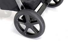 Передняя пара маневренных колес может двигаться прямо или «ходить» свободно для езды по ровной дороге или извилистой поверхности. На всех колесах стоят амортизаторы, которые придают ходу коляски плавности. На передних колесах установлена система Antishok. Сами колеса гелевые, не прокалываются, не требуют специального обслуживания. «Усилены» протектором на шинах.