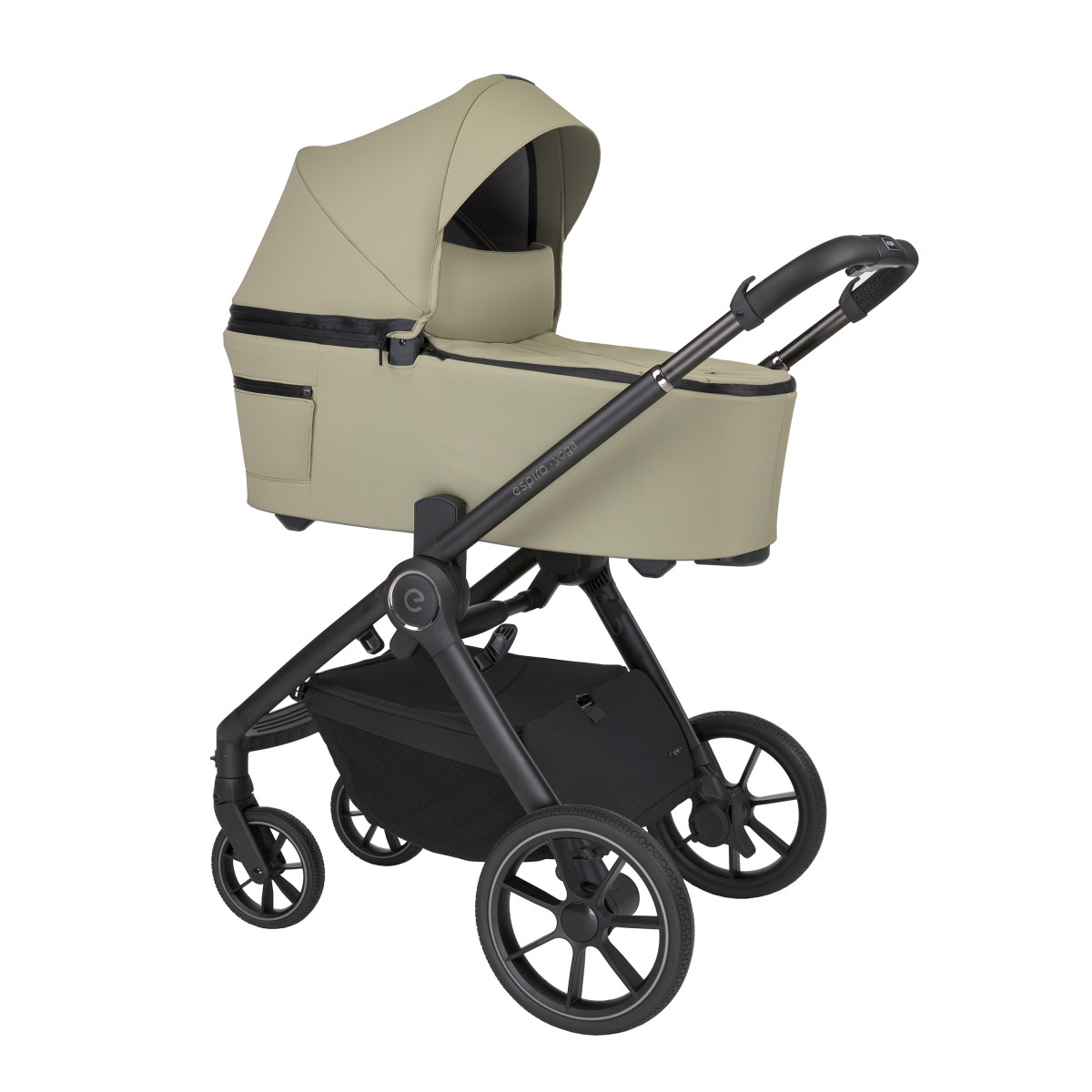 Люлька Espiro Yoga компактно складывается и ее легко транспортировать и хранить. Уникальная разработка инженеров компании – третья опора – стабилизирует тряску люльки на плохих дорогах. На основании люльки предусмотрели дополнительные опоры для устойчивости люльки и защиты от загрязнения дна люльки, если будет необходимость поставить ее на землю.