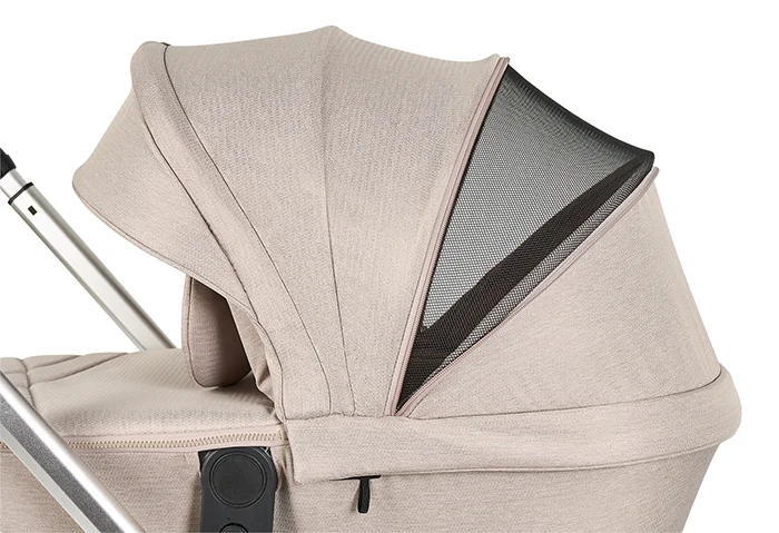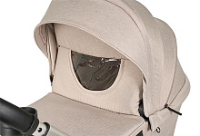 Спальный модуль (с рождения до 6 мес): утеплен по периметру термостеганным подкладом на синтепоне. Модель имеет жесткое ровное дно для правильного развития позвоночника малыша. Вместительное спальное место позволяет с комфортом разместить малыша. Спальный модуль имеет глубокий 3х-секционный капюшон с козырьком, который при необходимости можно убрать во внутрь. В капюшоне предусмотрена скрытая дополнительная секция из москитной сетки на молнии