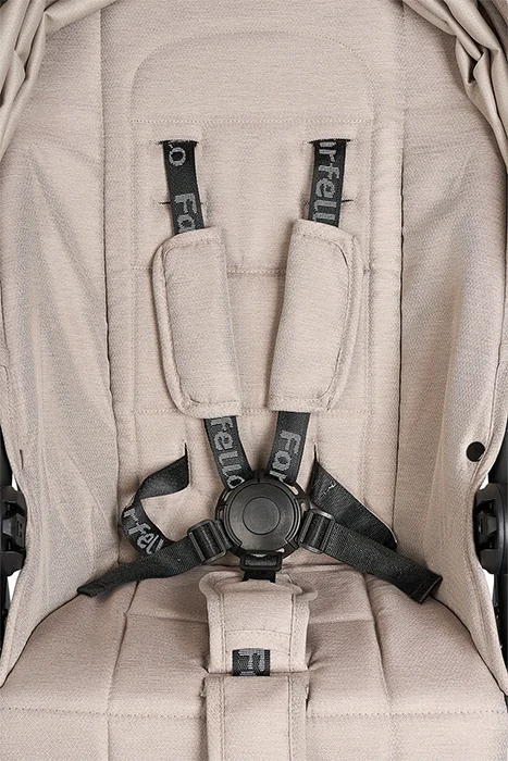 Прогулочный блок (с 7 до 36 мес): 3 положения регулировки угла наклона спинки при помощи кнопки. Для безопасности предусмотрены пятиточечные ремни безопасности, разделитель для ног и съемный бампер. Прогулочный блок имеет глубокий трехсекционный капюшон со скрытым окошком для вентиляции.