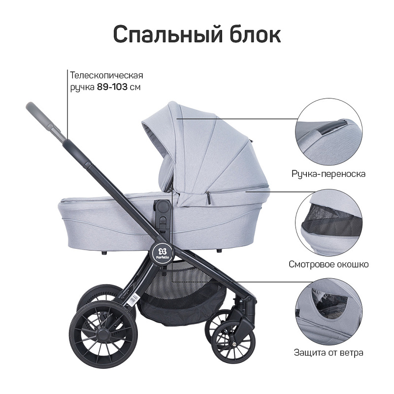 - Спальный модуль (с рождения до 7 мес): утеплен по периметру термостеганным подкладом на синтепоне. Модель имеет жесткое ровное дно для правильного развития позвоночника малыша. Вместительное спальное место позволяет с комфортом разместить малыша. Спальный модуль имеет глубокий 3х-секционный капюшон с козырьком, который при необходимости можно убрать во внутрь.