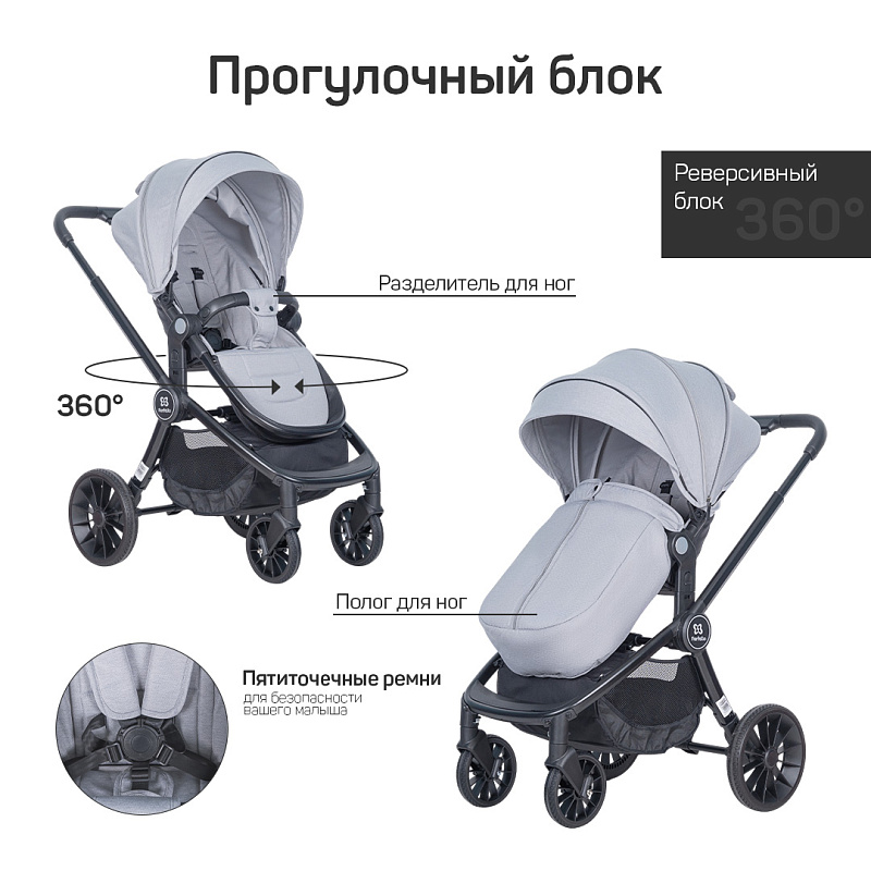 Модульная коляска Baby Shell 2в1 - универсальный вариант для детей с рождения и до 3 лет.