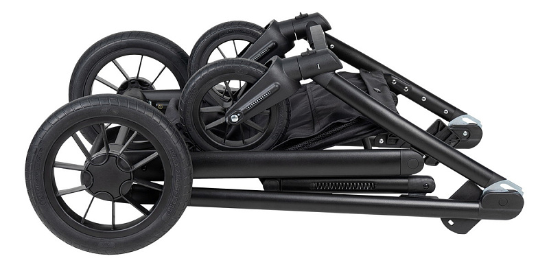 - Коляска просто и быстро складывается. Также Sola Trio Comfort можно сложить вместе с прогулочным блоком. Если блок установлен лицом вперёд, то для этого необходимо сначала наклонить спинку вперед и прижать к сидению, затем перекинуть
