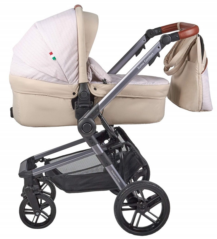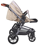 Коляска 2 в 1 состоит из двух модулей. Люлька предназначена для ребёнка с рождения и до 1 года, а прогулочный блок с 6 месяцев и до 3 лет. Модель удобна и проста в управлении благодаря передним поворотным колёсам с возможность фиксации. Вся тканевая обивка плотно прилегает к корпусу, предотвращая проникновение холодного ветра.