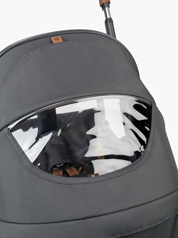 - Большой капюшон защитит от солнца, а смотровое окошко поможет наблюдать за ребёнком.