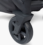 Прогулочный блок оснащён капюшоном до бампера. Бампер с разделителем для ног и пятиточечные ремни с мягкими накладками надёжно фиксируют малыша в коляске. Положение спинки и подножки можно отрегулировать.