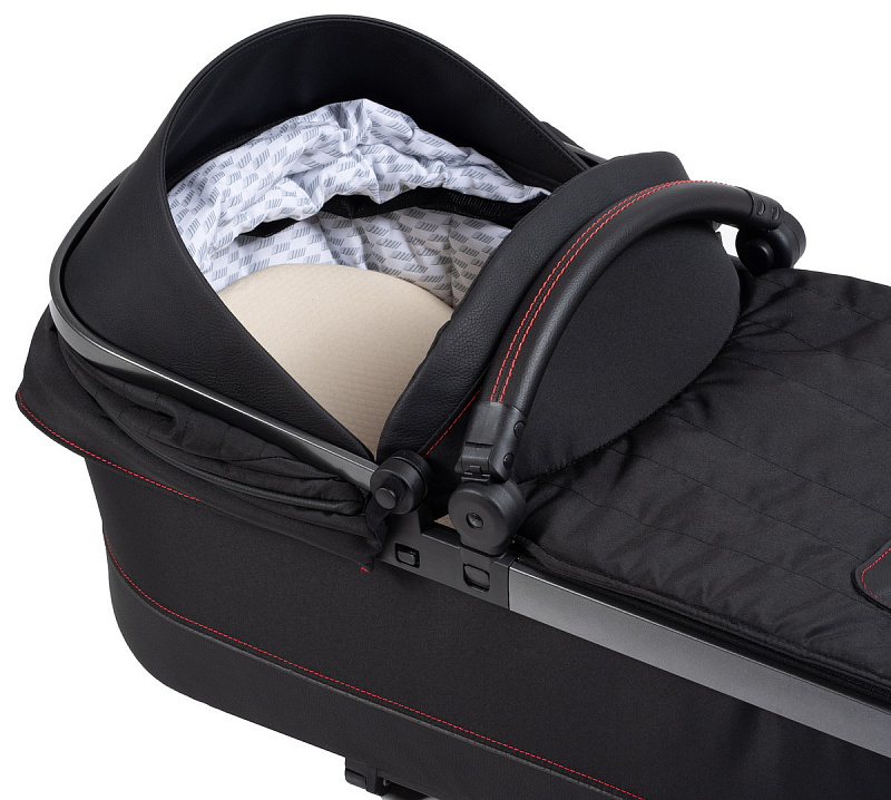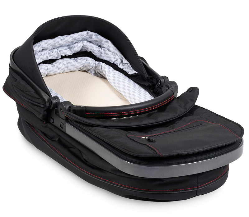 - габаритные размеры позволяют использовать люльку с рождения малыша до 5-7 месяцев. В комплект люльки входит матрасик Hartan и накидка от ветра