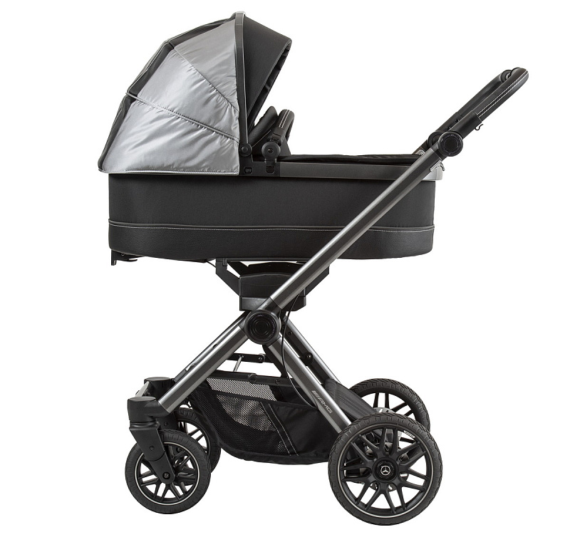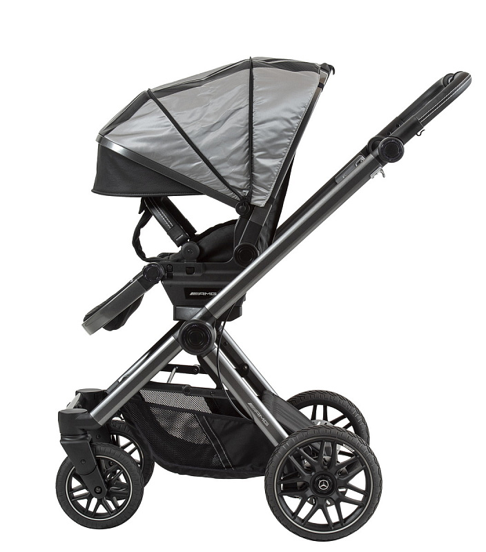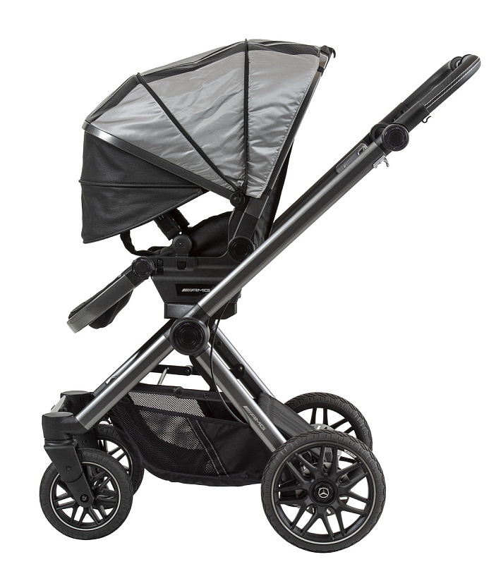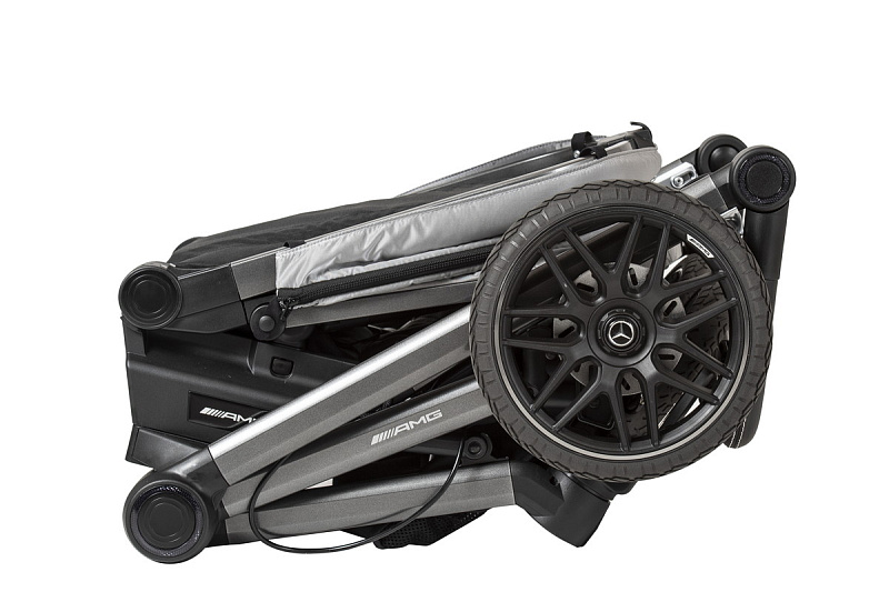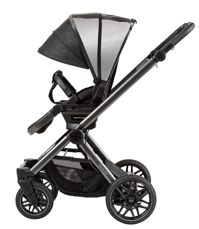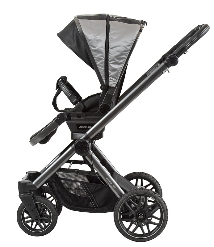 - 5-спицевые колеса коляски выполнены в дизайне amg, как у настоящих спорткаров