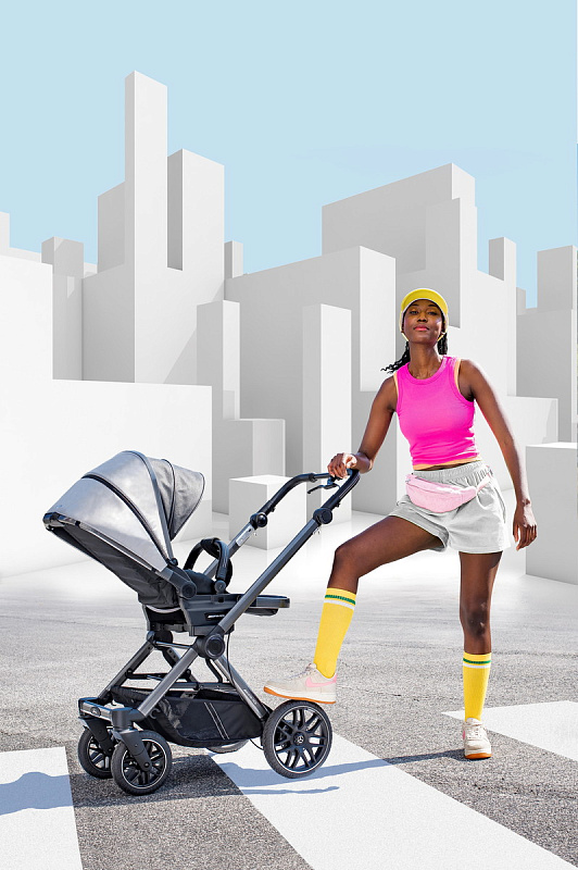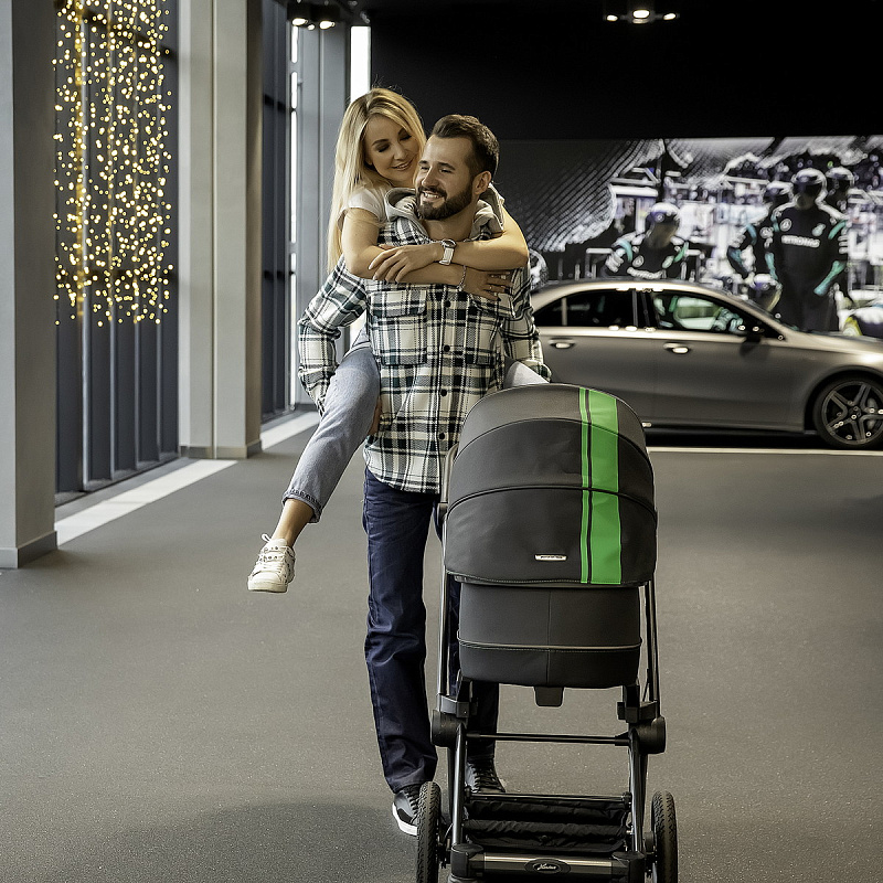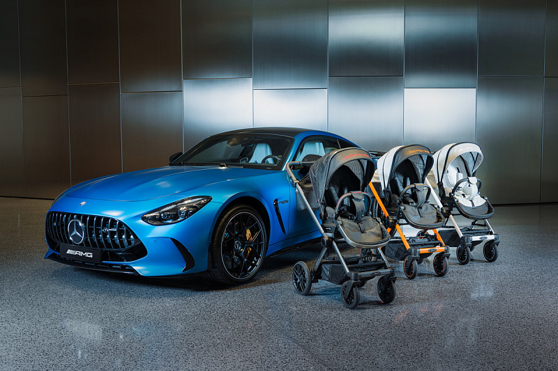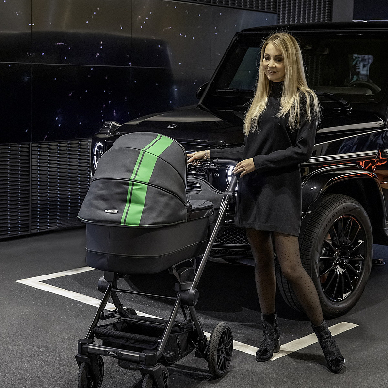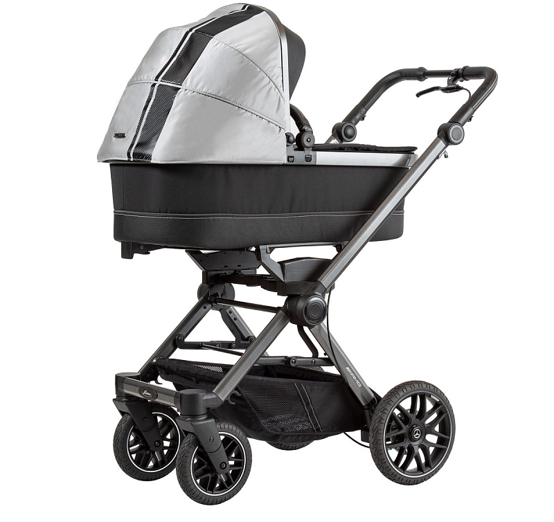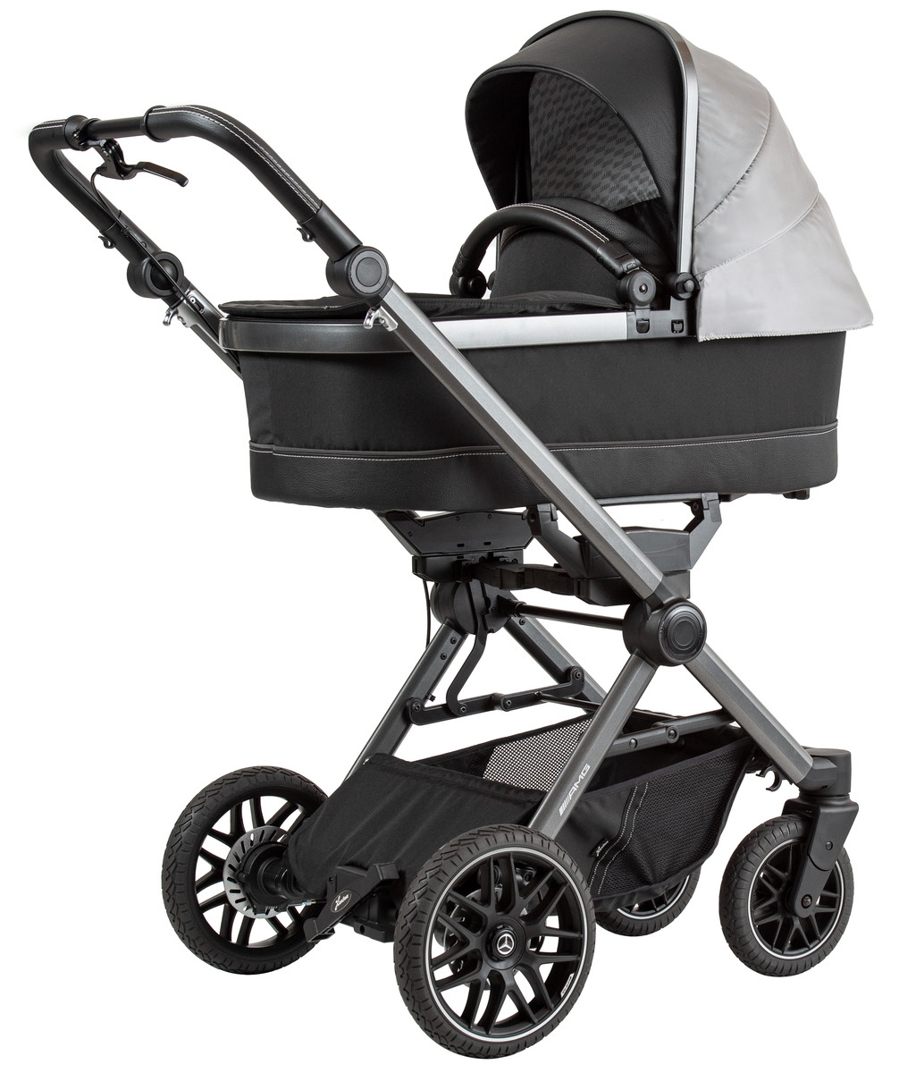 - 5-спицевые колеса коляски выполнены в дизайне amg, как у настоящих спорткаров