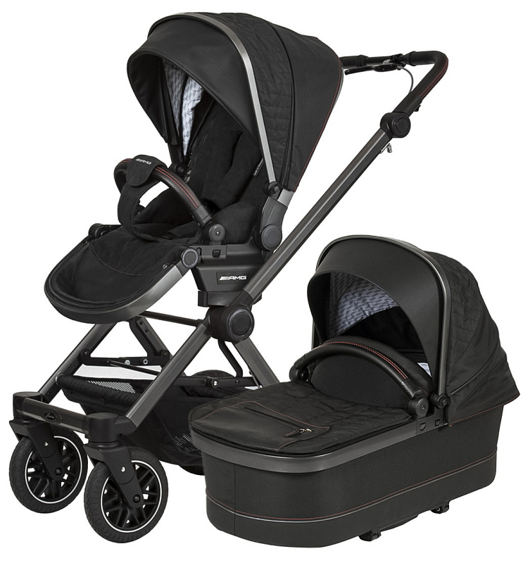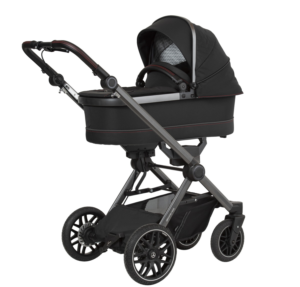 - 5-спицевые колеса коляски выполнены в дизайне amg, как у настоящих спорткаров