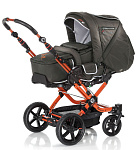 • Рама прочная, металлическая. Установлена на 2 пары колес, снабженных регулируемой автоматически системой амортизации, которая зависит от веса ребенка и качества покрытия.