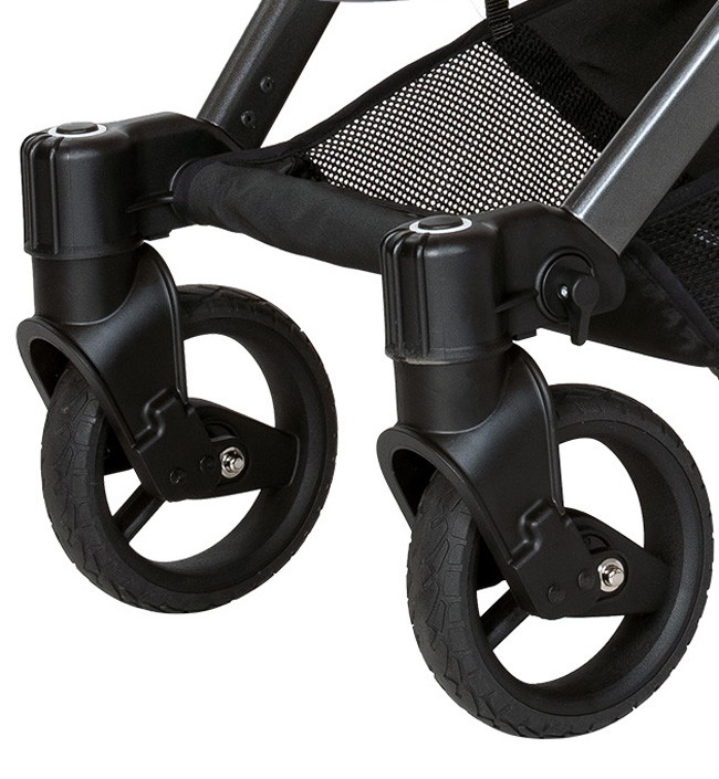 - передние поворотные колеса с возможностью блокировки и системой амортизации на обе оси обеспечат плавный хо