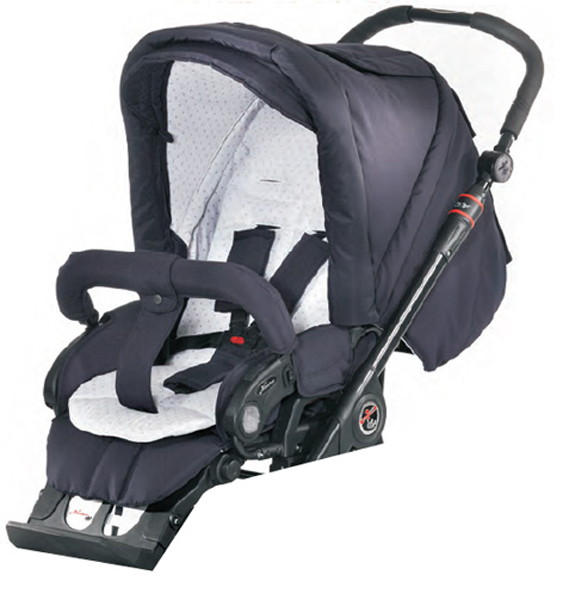 - Коляска с блоком компактно складывается, в сложенном виде может храниться в вертикальном положении, что очень удобно.